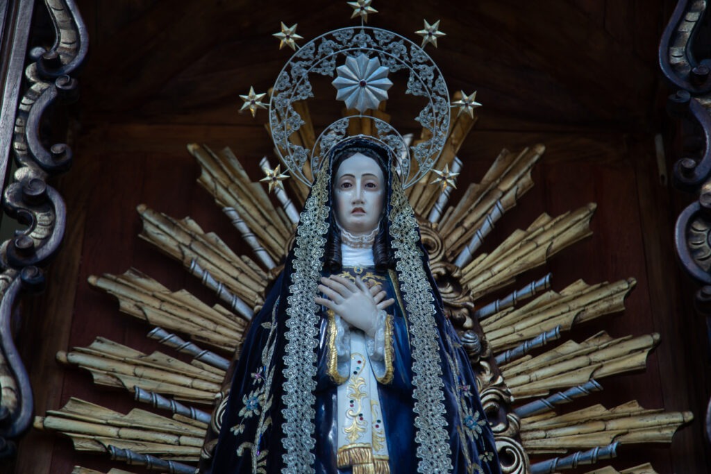 É comum vê-la adornada com ricos trajes bordados à mão e coroada com ouro, frutos de promessas e ofertas feitas por devotos ao longo de gerações.